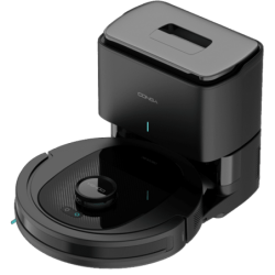 Tecnologia de navegação a laser Base de autoesvaziamento Depósito: 2,5lts Limpeza 4 em 1: varre, aspira, lava o chão e passa mopa Potência sucção: 7000 Pa Autonomia: 170min Inclui 2 escovas centrais intercambiáveis: uma mista e outra de silicone, ideais para os pêlos dos animais de estimação Mopa para lavar o chão e 1 escova lateral 4 níveis de potência de sucção e de água de lavagem Controlo APP