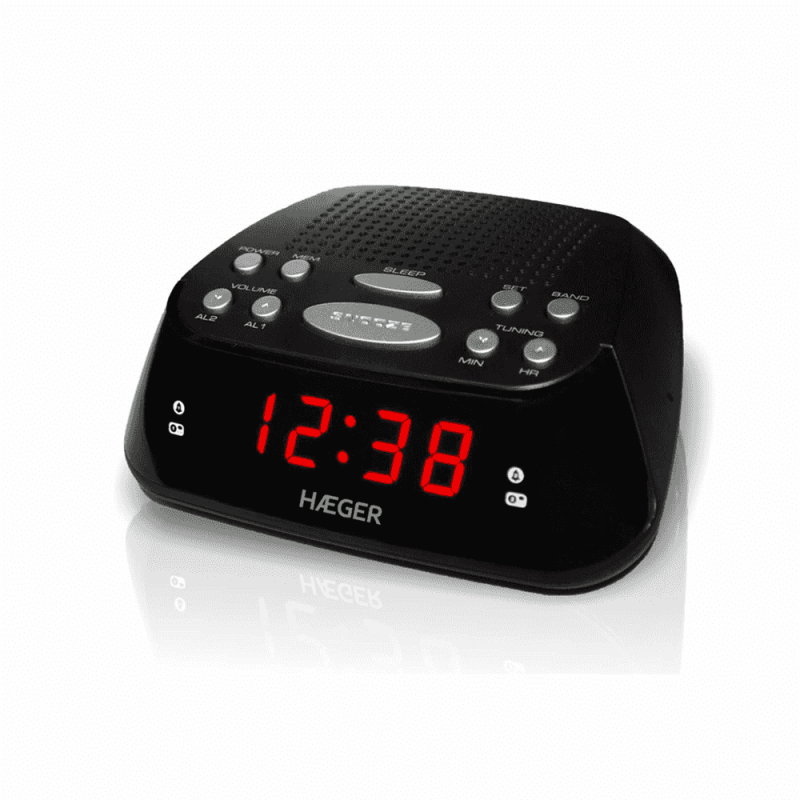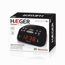 Rádio despertador HAEGER SNOOZE - rádio relógio digital com alarme duplo, 20 memórias para estações (10 fm / 10 am), ecrã LED vermelho de fácil vizualização