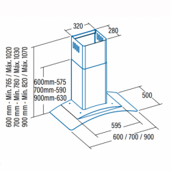 Dimensões (axlxp): 765-1020x600x500mm