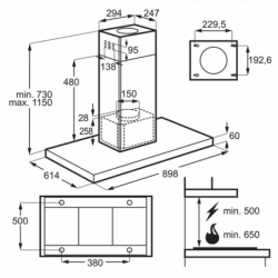 Cap. de extração, nível máx/mín: 615 m3/h / 320 m3/h m³/h