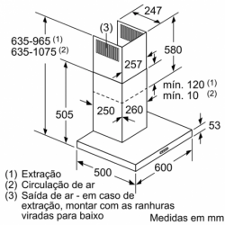 Capacidade de extração no nível normal máximo em modo de saída de ar: 621 m³/h