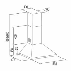 Painel de Controlo Mecânico 3 níveis de extração Capacidade de extração máxima ? mínima 480m3/h - 175m3/h Nível sonoro: 56dB(A), máximo: 67 dB(A) Motor K10. Consumo máximo de energia 110W Iluminação de alta eficiência por TIRA LED compacta Sistema de instalação fácil Filtros laváveis na máquina de lavar louça Acabamento em branco Pressão máx.: 291Pa Descarga 150/125 mm Classe energética: A Dimensões (axlxp) 910-670X600X475MM