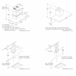 Medidas do aparelho em saída de ar (AxLxP): 635-965 x 900 x 500 mm