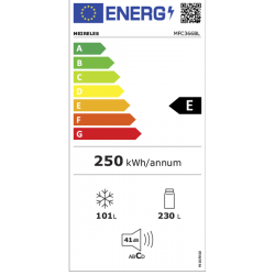 Combinado de livre instalação No Frost Total Multicooling 2 Compressores Pegas retro Termostato Capacidade Total Bruta: 351L Capacidade útil Frigorífico: 230L Capacidade útil Congelador: 94L Ion Tech ? elimina moléculas Congelação 4 estrelas Classe climática N/ST Rodas Luz LED Prateleiras em vidro Classe energética: E Medidas: 60 x 68 x 190 cm (larg. X prof. X alt.)