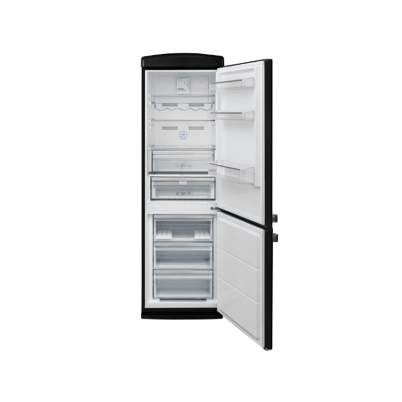 Combinado de livre instalação No Frost Total Multicooling (2 compressores) Pegas retro Termostato Capacidade Total Bruta 331L Capacidade útil Frigorífico 230L Capacidade útil Congelador 101L Ion Tech ? elimina moléculas Congelação 4 estrelas Classe climática N/ST Rodas Luz LED Prateleiras em vidro Classe Energética E Medidas: 60 x 68 x 190 cm (larg. X prof. X alt.)