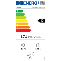 Capacidade útil: BioFresh: 180,7 l?/?Congelador: 133 l