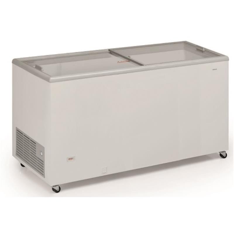 Capacidade bruta total: 470 L Capacidade net total: 398 L Espessura do isolamento: 70 mm Nº de tampas: 2 Tampa de correr em vidro Tampo com fechadura 6 cestos opcionais Termómetro Rodas Gás R600a Nível de ruído: 40 dB Consumo anual de energia: 1132 kWh Tempo de subida temperatura:17-11 h Classe energética: D Dimensões: A895xL1503xP670 mm