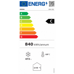 Capacidade total: 472 L Super isolada 65 mm Interior em alumínio 1 cesto Rodas Classe climática: tropical Nº de estrelas: 4 Gás R600a Capacidade de congelação: 24Kg/24H Nível de ruído: 44 dB Consumo anual de energia: 840 kWh Tempo de subida de temperatura: 45 h Classificação energética: C Cor: Branco Dimensões: A860xL1700xP690 mm