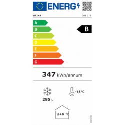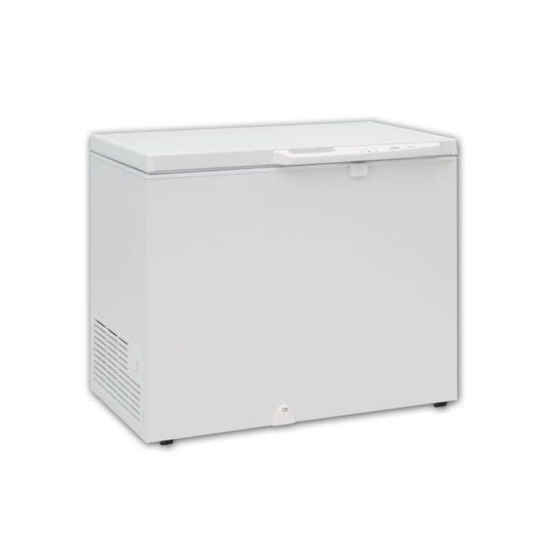 Capacidade total: 285 L Super isolada 70 mm Interior em alumínio Exterior plastificado Luz interior e fechadura 1 cesto Rodas Classe climática: tropical Nº de estrelas: 4 Gás R600a Capacidade de congelação: 18Kg/24H Nível de ruído: 54 dB Consumo anual de energia: 347 kWh Tempo de subida de temperatura: 40 h Classificação energética: B Cor: Branco Dimensões: A860xL1170xP660 mm