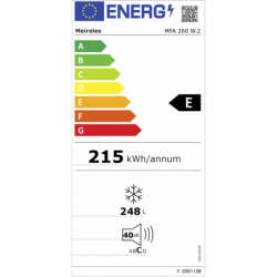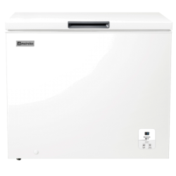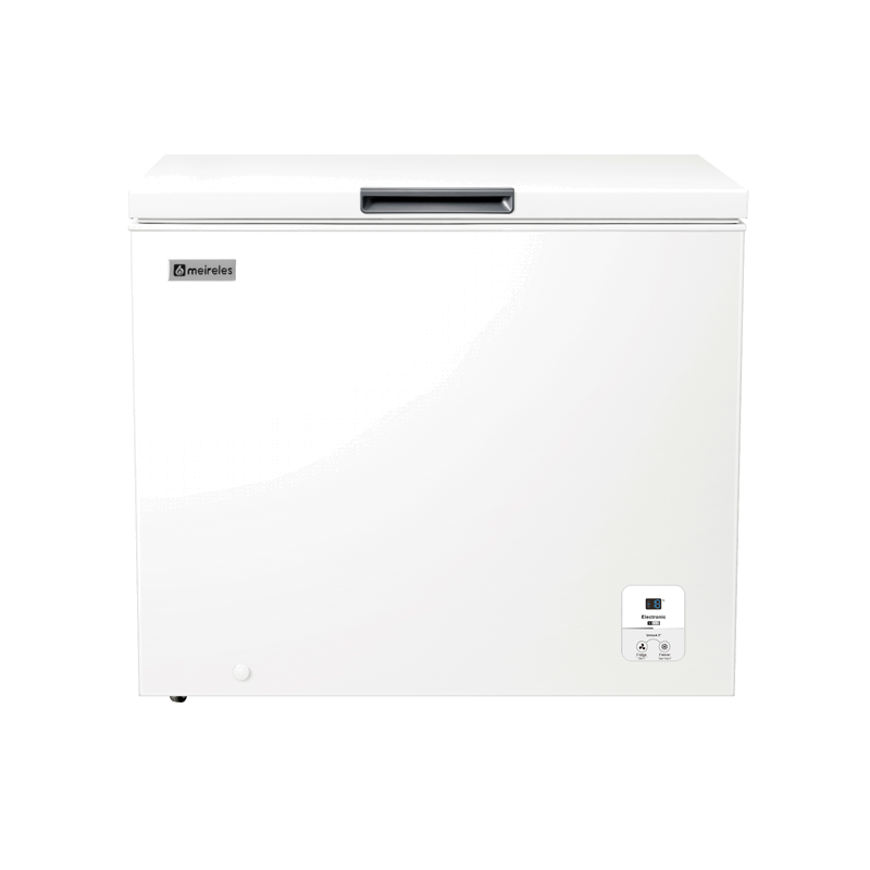 Arca horizontal de livre instalação dual Congela e conserva (-25ºC até 9Cº) Volume útil 248L Congelação 4 estrelas Termóstato electrónico regulável Display digital Pega externa Indicador de luz Nível de ruído 40 db(A) 2 Cestos Esgoto frontal Pés ajustáveis Rodas Classe Energética E Dimensão (larg. x prof. x alt.): 96x63x84,7cm