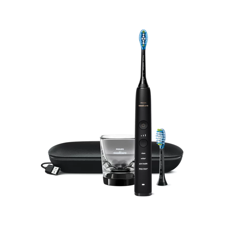 Itens incluídos: 1 DiamondClean 9000; Cabeças de escova: 2 C3 Premium Plaque Control; Estojo de viagem para carregamento por USB; Carregador de copo; Base de carregamento