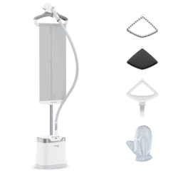 Acessórios: Sistema Press & Steam, luva de proteção, cobertura de vapor para tecidos delicados, escova grossa para tecidos mais pesados
