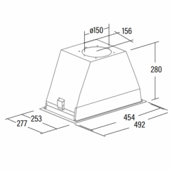 Largura: 49,2cm Painel de Controlo Mecânico 3 níveis de extração Capacidade de extração máxima ? mínima (Reg.(UE) nº65/2014) 645m3/h - 300m3/h Nível sonoro (Reg.(UE) nº65/2014): 50 dB(A), máximo: 65 dB(A) Motor BT2. Extra silencioso. Consumo máximo de energia 200W Iluminação de alta eficiência por LED Classe energética: C Dimensões (axlxp): 280x492X277mm Cor: Preto