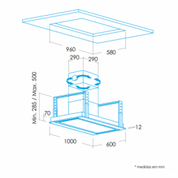 Potência de extração Máx / Mín: 850 / 340 m3/h