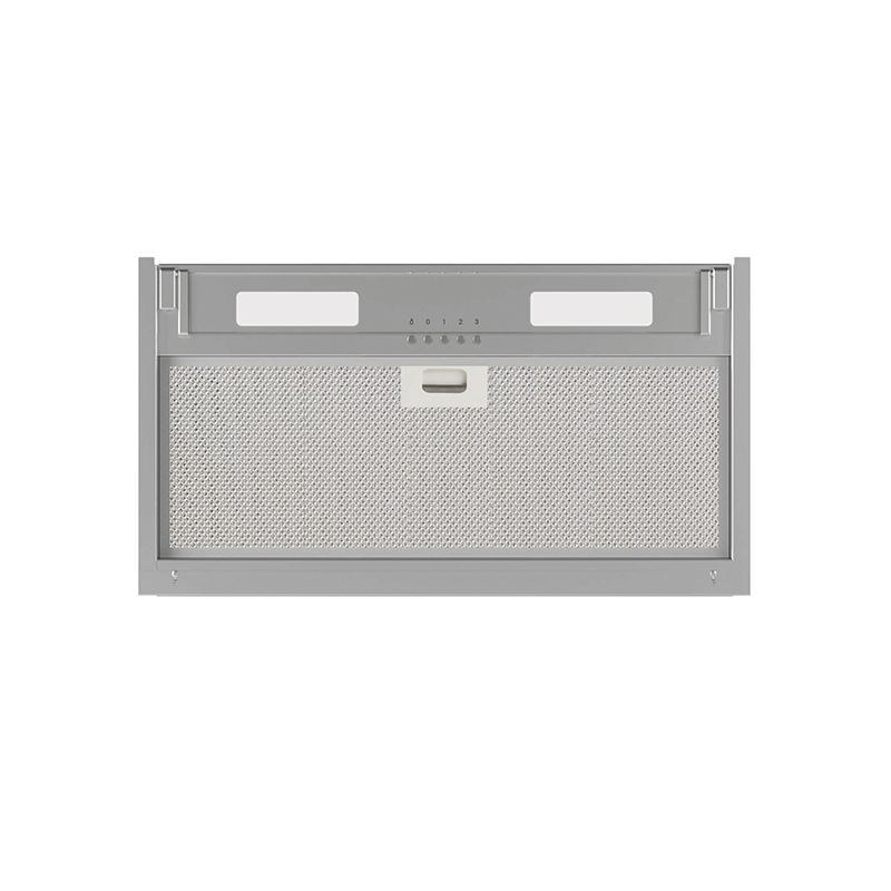 Exaustor de encastrar em móvel de 60 cm Eficiência energética C 3 níveis de extração Comandos mecânicos Motor M3R. Extra silencioso. Consumo máximo de energia 270W Potência de extração Máx / Mín: 645 / 385 m3/h Nível sonoro Máx / Mín: 70 / 56 dB(A) Barra de iluminação LED, classe A Filtros standard metálicos com asas de plástico lavável Válvula anti-retorno incluída Dimensões (axlxp): 280x598x310-350mm