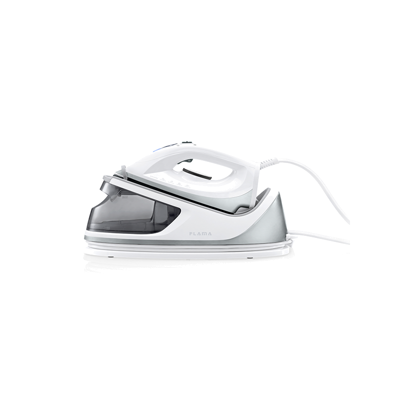 Potência: 2700W Capacidade do depósito: 1,1lts Enchimento automático Jato de vapor: 160 gr/min Débito de vapor: 120 gr/min Indicador luminoso de funcionamento Controlo de temperatura ajustável Sistema anticalcário Termóstato regulável Base cerâmica antiaderente Depósito amovível