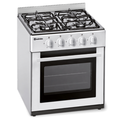 FORNO Forno a gás com termóstato Volume útil 55L Válvula de segurança Grelha e tabuleiro de recolha de molhos Porta amovível com vidro duplo Classe energética A