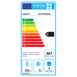 Capacidade útil: 331L) Volume bruto: 333L Refrigerante: R600a Potência: 210w Descongelamentp automático Termóstato regulável Gama de temperaturas: +1ºc/+12ºc Interior ventilado Estética plana Porta fecho automático Prateleiras reguláveis Prateleira de arame: 7 Pés reguláveis: 4 Dimensões sem embalagem (AXLXP): 171x60x65cm Peso líquido/bruto: 52/56kg Inclui kit de nivelamento que permite optar pelos pés reguláveis de origem ou pés reguláveis 7,5 - 10cm
