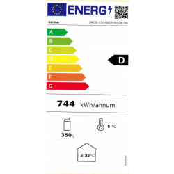 Capacidade bruta: 350 L Porta de vidro com friso em alumínio Porta reversível 6 prateleiras em grelha ajustáveis Luz interior LED Temperatura ajustável entre +3 ºC até +14º C Descongelação automática Consumo de energia anual: 744 kWh Nível de Ruído: 50 dB Classe Energética: D Cor: Branco Dimensões: A1730xL600xP600 mm