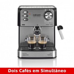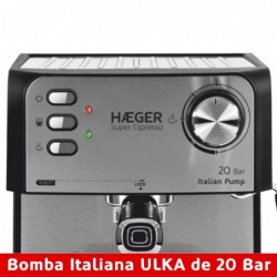 A máquina de café HAEGER Super Expresso oferece uma experiência de café profissional em casa com bomba italiana ULKA de 20 Bar, tanque de água de 1,60L e topo em aço inox. Fácil de usar e limpar, comp