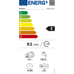 Consumo de energia para 100 ciclos do programa Eco: 92 kWh