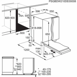 Dimensões A(min/máx)xLxP (mm): 820/900 x 600 x 550