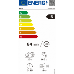 Consumo de energia para 100 ciclos do programa Eco: 64 kWh