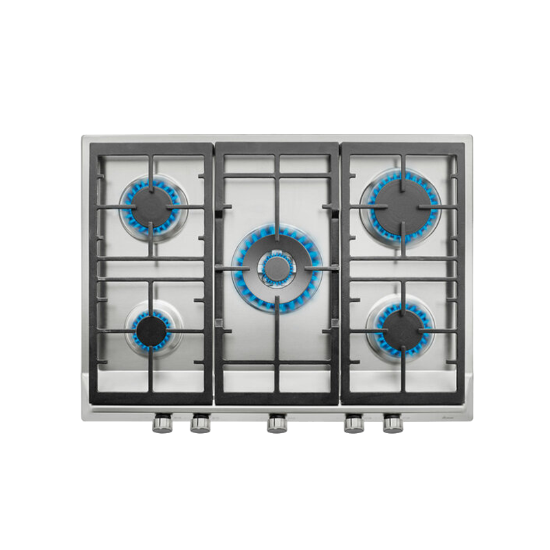 5 queimadores de gás (auxiliar 1,00 kW + 2 semirápidos 1,75 kW + rápido 2,80 kW + duplo anel 4,00 kW)