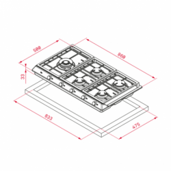 Largura de encastre (mm): 833