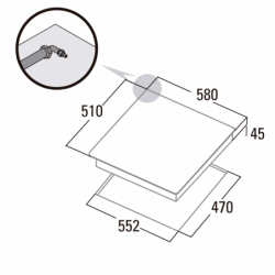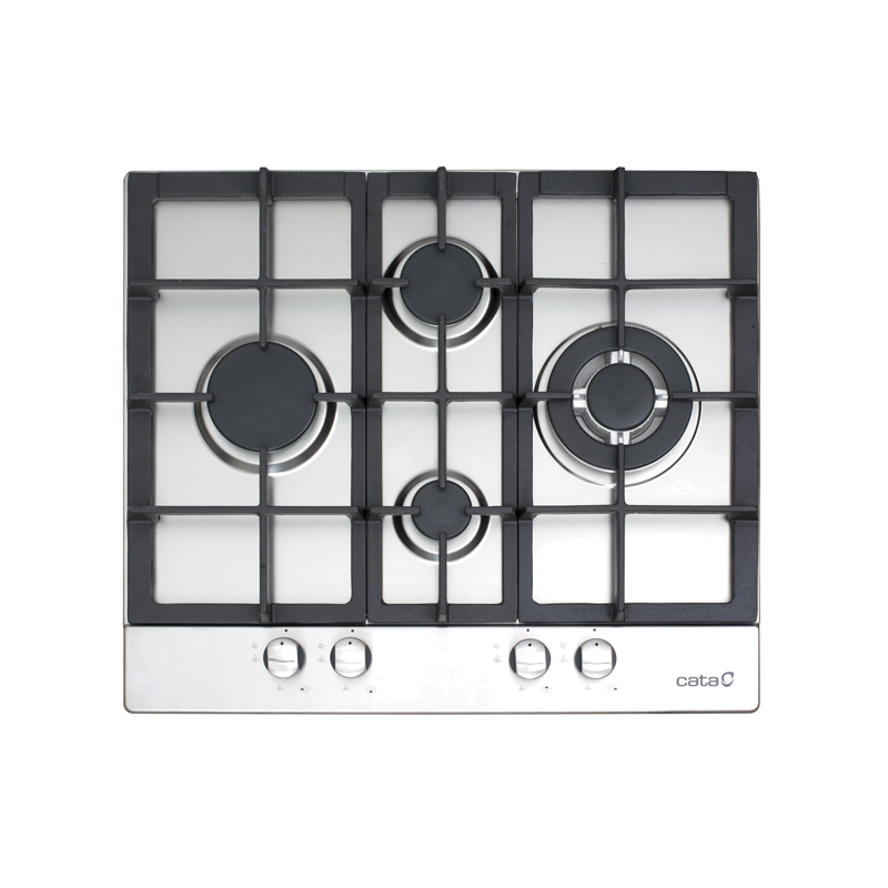 4 queimadores de gás: - cima: 1 semirrápido de 1,75kW - baixo: 1 auxiliar de 1kW - direita: 1 coroa tripla de 3,5kW - esquerda: 1 rápido de 3kW Ligação eletrónica integrada no comando Válvulas de segurança Grelhas/Queimadores de ferro fundido Preparada para Gás Natural Injetores de Gás Butano incluídos na embalagem Potência total 9,25 kW Dimensões (axlxp) 45x580x510mm