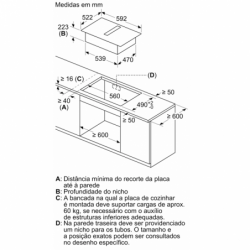 Dimensões do nicho para a instalação (AxLxP mm) : 223 x 560 x (490 - 490)