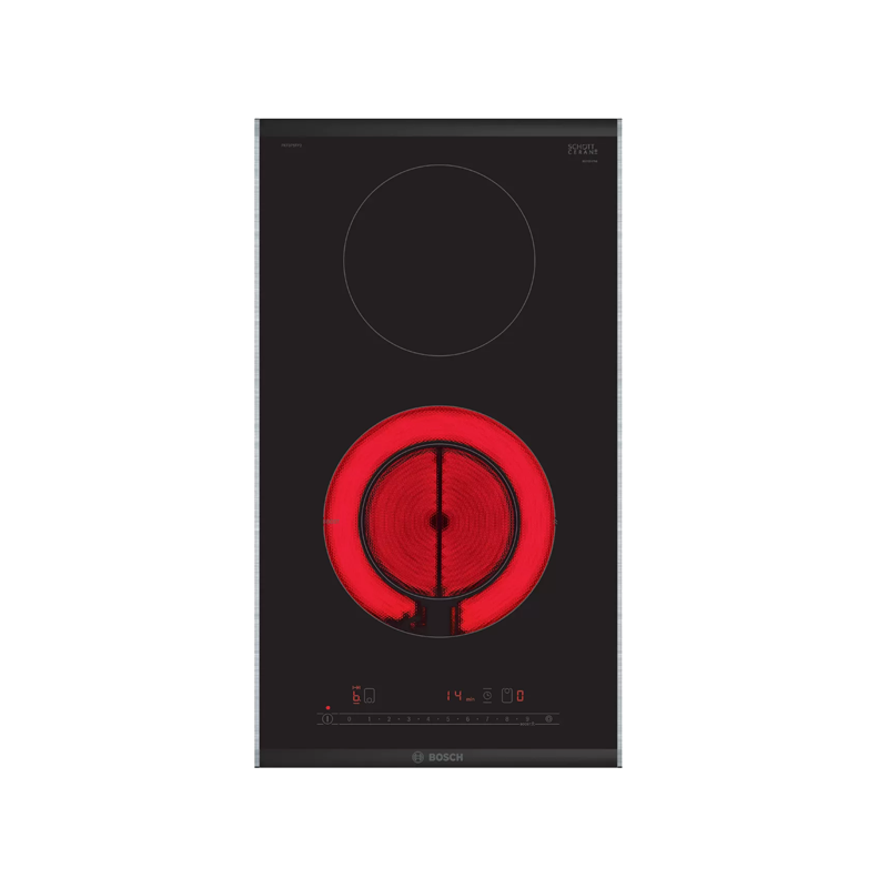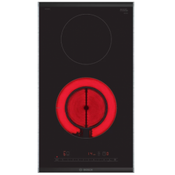 Largura: 30 cm Secção de planos de cozedura/tampos apenas para aparelhos independentes: 2 Dimensões das zonas: 1 x 14,5 cm Ø, 1 x 18,0 cm Ø Potência das zonas: 1 x 1.2 KW, 1 x 2.0 (2.3) kW Material de superfície básico: Vidro Cor principal do produto: Preto Níveis de control: 17 níveis de potência Zonas Flexiveis: Two-ring cooking zone Consumo de energia da placa: 192,0 Wh/kg Temporizador Dimensões do produto: 38 x 306 x 527 mm